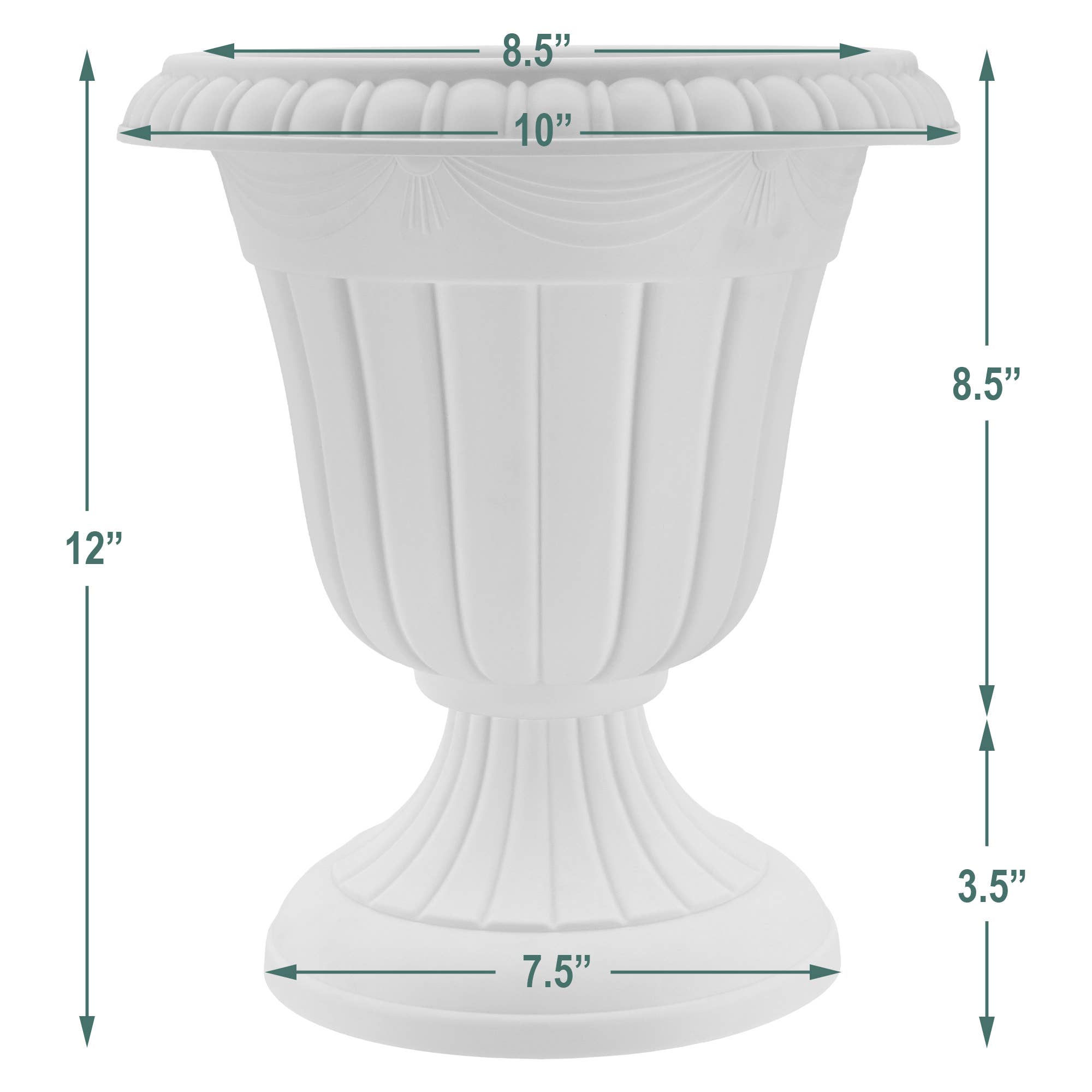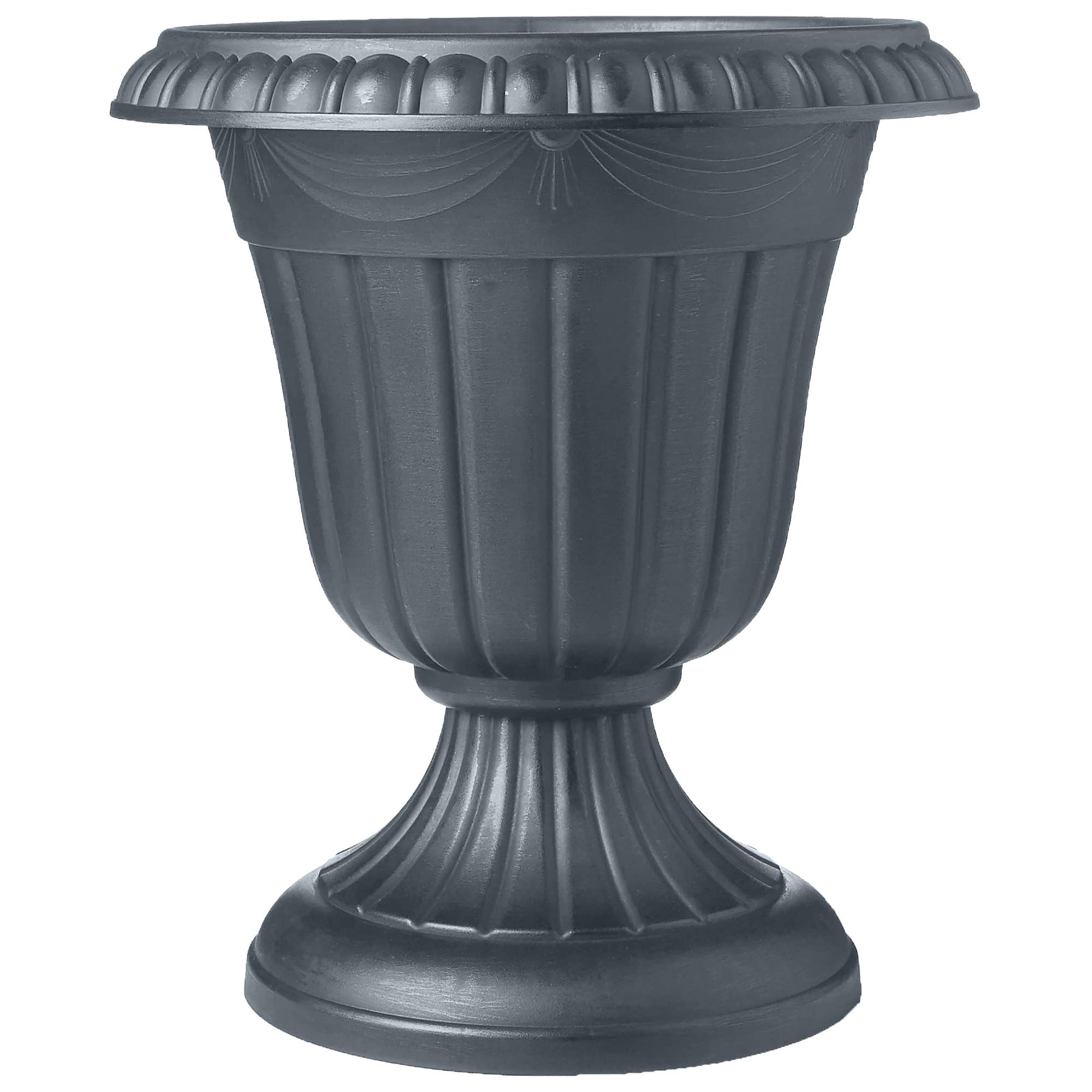 Featuring a traditional design, these plastic urns are an ideal statement piece for any entrance way, living space, table centerpiece, or garden. The high-quality synthetic material creates a sturdy product that can compete against weather and UV-rays. The two-piece pedestal construction is a classic design that adds style to any décor. The urns are available in a variety of sizes to accommodate any size and shape of plant or flower.
